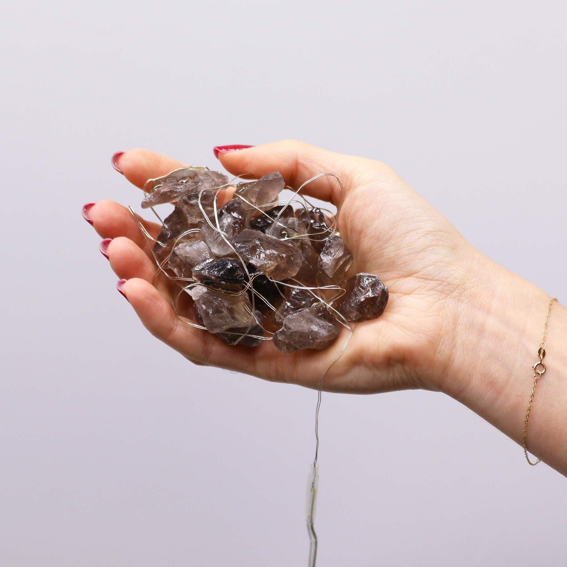 Luzes Encantadoras de Pedras Preciosas – Citrino Fumê, combinando beleza natural e energia positiva. Ideal para decoração, meditação ou rituais, promovendo clareza mental, prosperidade e equilíbrio energético.
